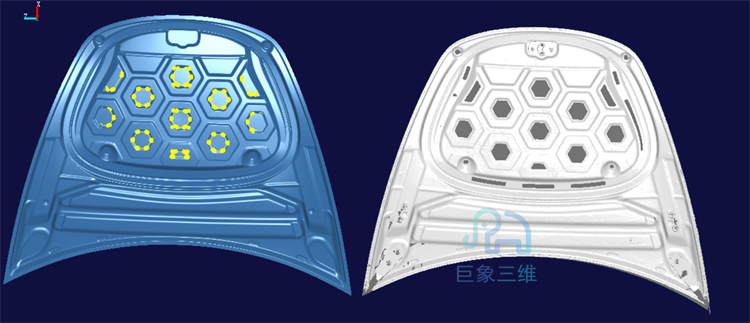 逆向建模是指利用測量設備測取實物模型的表面數據,在汽車車身產品開發過程中,許多時候汽車覆蓋件并非由CAD模型描述,設計者面對的是實物樣件。為了適應先進技術的發展,需要通過一定的途徑,將這些實物轉化為CAD模型,使得能利用CAD/CAM、PDM等先進技術對其進行處理或管理。這種從實物樣件獲取產品CAD模型的技術就是逆向工程(Reverse Engineering)。廣義的產品逆向工程包括形狀 (幾何 )反求、工藝反求和材料反求等諸多方面,是一個復雜的系統工程