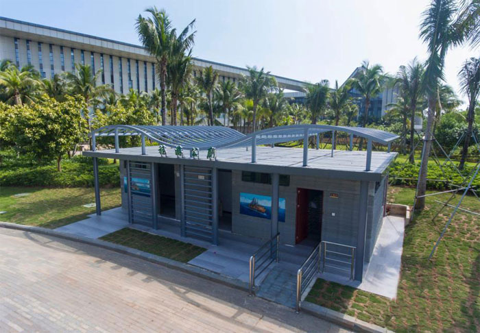 近日,一座3D打印旅游廁所亮相海南省瓊海市。據(jù)了解,這座3D打印旅游公廁內(nèi)的配套設(shè)施人性化,裝有空調(diào),除了男、女洗手間外,另設(shè)殘疾人專用間,占地面積77.7平方米。3D打印墻體使用一種叫“油墨”的新型環(huán)保材料,不用一根鋼筋,打印出來的建筑強度卻能超過混凝土的強度,造價79.57萬元。